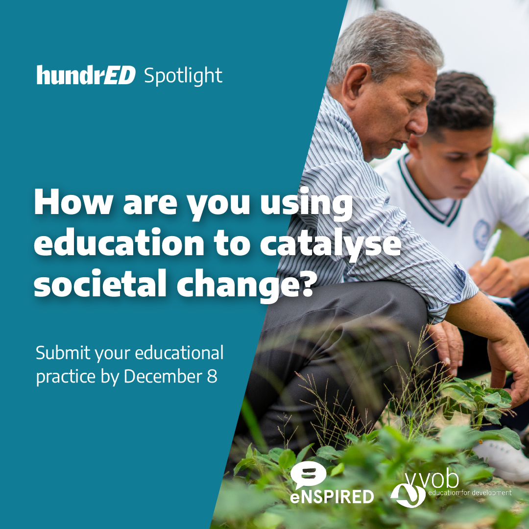 Onderwijs heeft de kracht om samenlevingen te transformeren. Toch worden de meeste onderwijsideeën en -modellen wereldwijd nog steeds gedomineerd door westerse perspectieven. Met deze Spotlight on Education for Societal Change wil HundrED, in samenwerking met eNSPIRED, daar verandering in brengen. Deze internationale oproep richt zich op het zichtbaar maken van innovatieve onderwijsvormen uit het Globale Zuiden* die bijdragen aan maatschappelijke verandering. Denk aan initiatieven rond vredeseducatie, gendergelijkheid, inclusie, klimaatactie en sociale rechtvaardigheid.